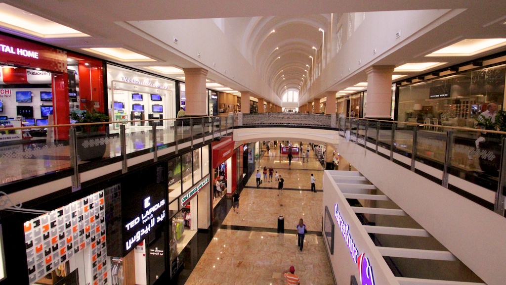 Le shopping mall : une création américaine qui aujourd’hui s’exporte mondialement et a trouvé dans toutes les métropoles de ce siècle naissant une voie d’expression renouvelée. Car, si en Europe l’idée du shopping mall demeure en conflit avec les rues et artères commerçantes, des villes nouvelles comme Dubaï ont vite intégré ce type d’espace. À un point tellement exacerbé qu’il y semble impossible de répertorier le nombre exact de ces shopping malls. Pourquoi ? D’abord, parce qu’avec des températures souvent au-dessus des 35 degrés, le shopping mall est un espace climatisé — proche des 17 degrés — où l’on peut se dérober à la chaleur étouffante de l’air extérieur. Ensuite, les publicités nous en avaient donné un bref aperçu, il se trouve que l’Emirati — l’homme comme la femme — est parfaitement à l’aise avec le shopping comme activité sociale et familiale à part entière. Un nombre incalculable de boutiques placées les unes à côté des autres sont dévolues à cette activité. Dubaï réalise le rêve de tout accro au shopping : une méga-concentration de boutiques diverses couplée à une optimisation de la mobilité ; il ne faut que trois pas pour passer d’une boutique à une autre. Mais ici les marques accessibles à toutes les bourses comme Zara, H&M, Naf Naf ou Virgin se font plutôt rares. Ce sont Armani, Vuitton, Prada, Lacoste, Gucci, Bulgari, Ralph Lauren, Yves Saint Laurent, Christian Dior et autres qui mènent la danse. Alors même que l’on se trouve à des milliers de kilomètres de la France, ce ne sont pas les milliers de boutiques qui vont nous dépayser. Il est possible de manger un sandwich chez Paul, se faire couper les cheveux chez Franck Provost ou bien de prendre son café favori au Starbuck Coffee.