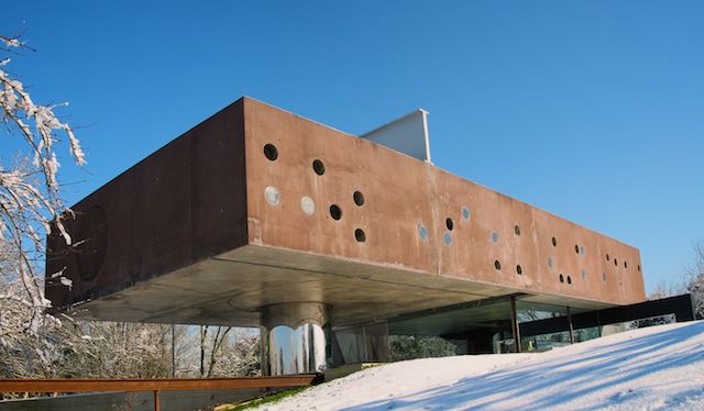 L’ingénierie de Cecil Balmond y est pour beaucoup. En termes techniques, un soubassement est creusé dans la terre et dans la roche, tandis qu’un énorme volume opaque – en fait, une énorme double coque de béton – se tient comme en suspension dans les airs L’idée est d’arriver à dématérialiser le centre en brouillant les repères de lecture de cette structure. L’espace chambre, ce lourd volume de béton percé de hublots, tient donc un premier point porteur avec la cage d’escalier de la partie enfants, plaquée inox pour se faire oublier visuellement.